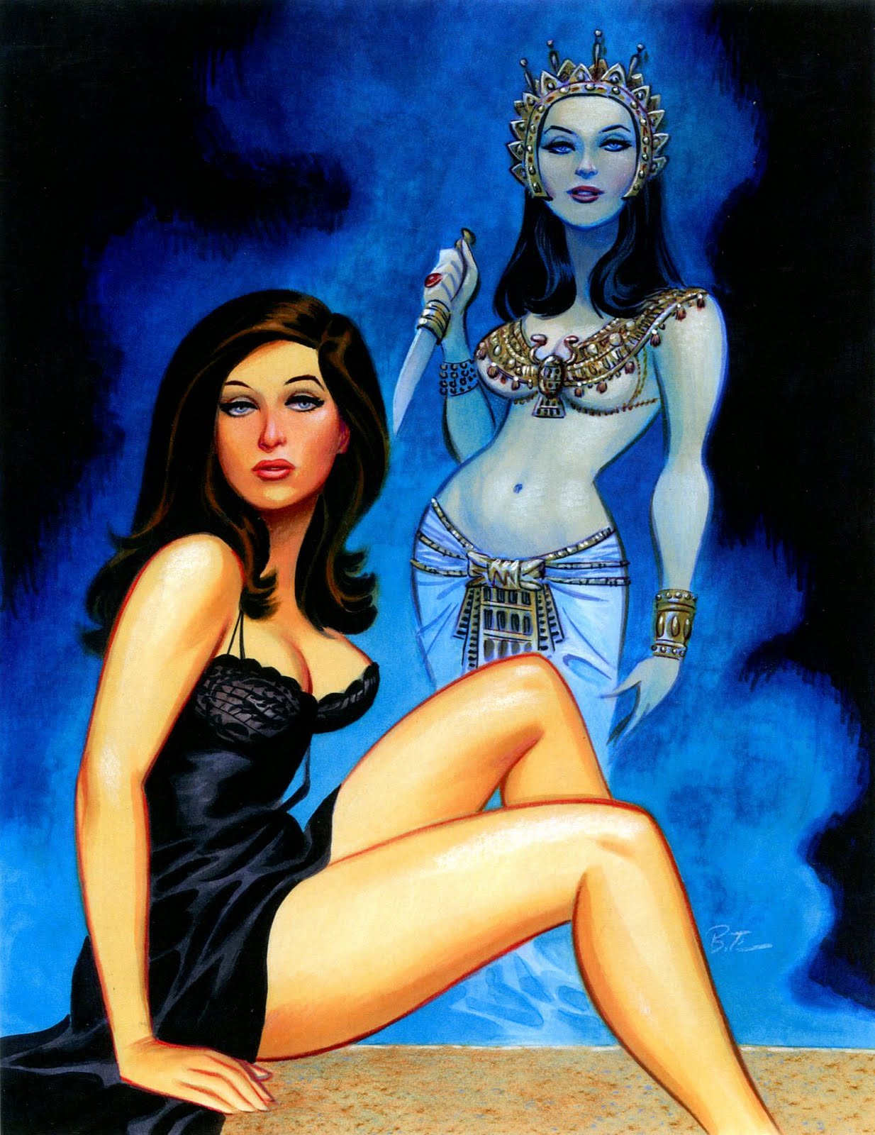 As indicated on the front cover (pictured above left) this installment focuses on the HAMMER STUDIO'S Mummy cycle. The back cover (pictured above right) is another instant classic by illustrator and cartoonist Bruce Timm, depicting Valerie Leon in her role from the 1971 BLOOD FROM THE MUMMY'S TOMB. Va-Va-Tomb!